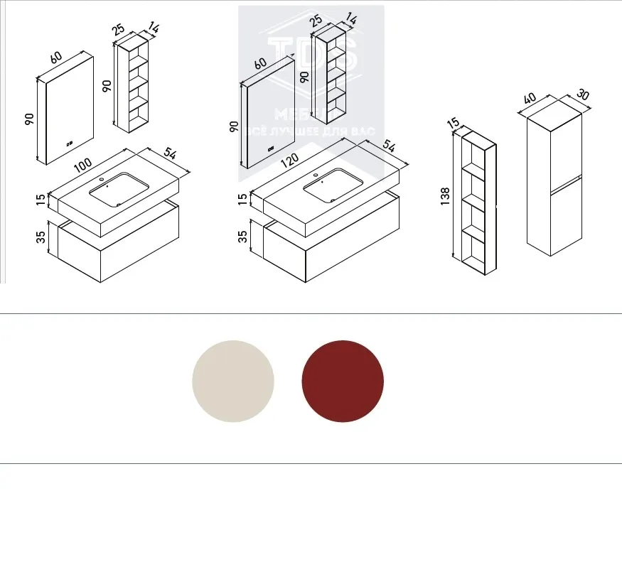 Описание Комплект мебели для ванной Levanto 120 см TDS-MDV-009: